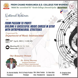 Department of Music Instrumental organized a one-day National Webinar titled “From Passion to Profit: Building a Successful Music Career in Sitar with Entrepreneurial Strategies” on 08th April 2025 to inspire and guide students on transforming their passion for sitar into a sustainable and rewarding profession. The webinar was led by Dr. Sunny Sharma, Assistant Professor from WRS Govt. College, Dehri (Himachal Pradesh). Dr. Sharma began the session by sharing his journey in classical music and emphasized the importance of passion, discipline, and continuous learning in mastering the sitar. He highlighted how traditional music careers are evolving and stressed the need for musicians to adopt entrepreneurial mindsets.